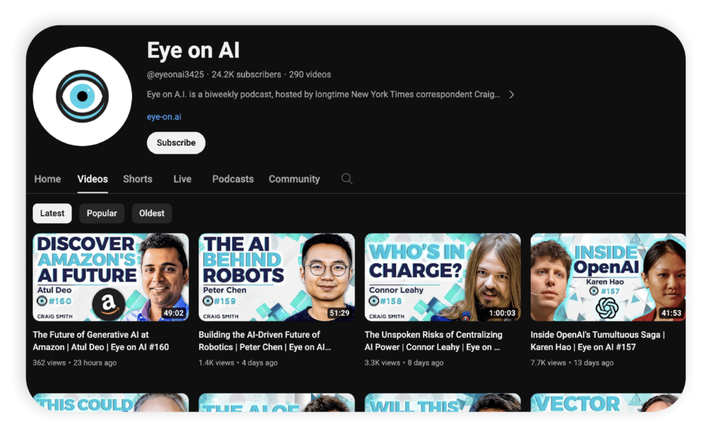 “Eye on A.I.” is a biweekly podcast hosted by Craig S. Smith, a longtime New York Times correspondent. The podcast explores incremental advances in machine intelligence, offering a broader context and considering the global implications of developing AI technology. With a focus on the imminent changes AI will bring, this podcast is an essential listen for those interested in the future implications of AI.